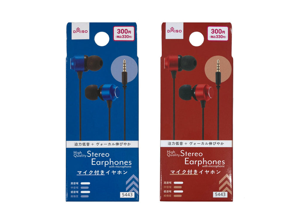 ダイソーの有線イヤホン「AL-001(レッド/ブルー)」は、330円という低価格ながら、普段使いに十分な基本性能を備えています。