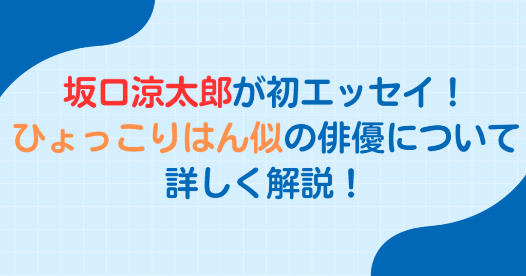 坂口涼太郎が初エッセイ!ひょっこりはん似の俳優について詳しく解説!