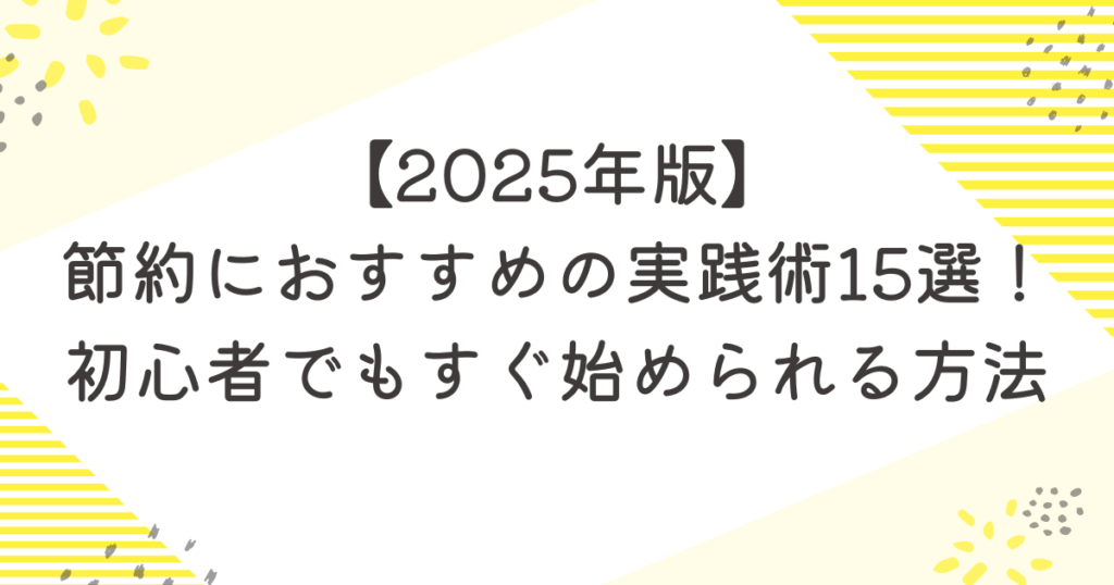 【2025年版】節約におすすめの実践術15選!初心者でもすぐ始められる方法